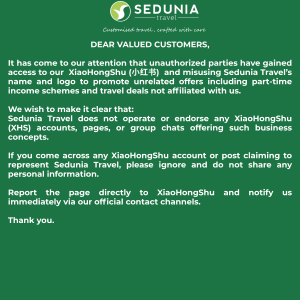 Discover an extraordinary world of travel with Sedunia Travel exclusive customizations, meticulously crafted itineraries to cater to your travel style and budget. From tailored products to bespoke services, immerse yourself in a uniquely customized experience that aligns perfectly with your preferences and interest.Explore the epitome of personalization and unlock a journey like no other, meticulously designed exclusively for you. Sedunia Travel offers unbeatable travel deals and holiday packages.