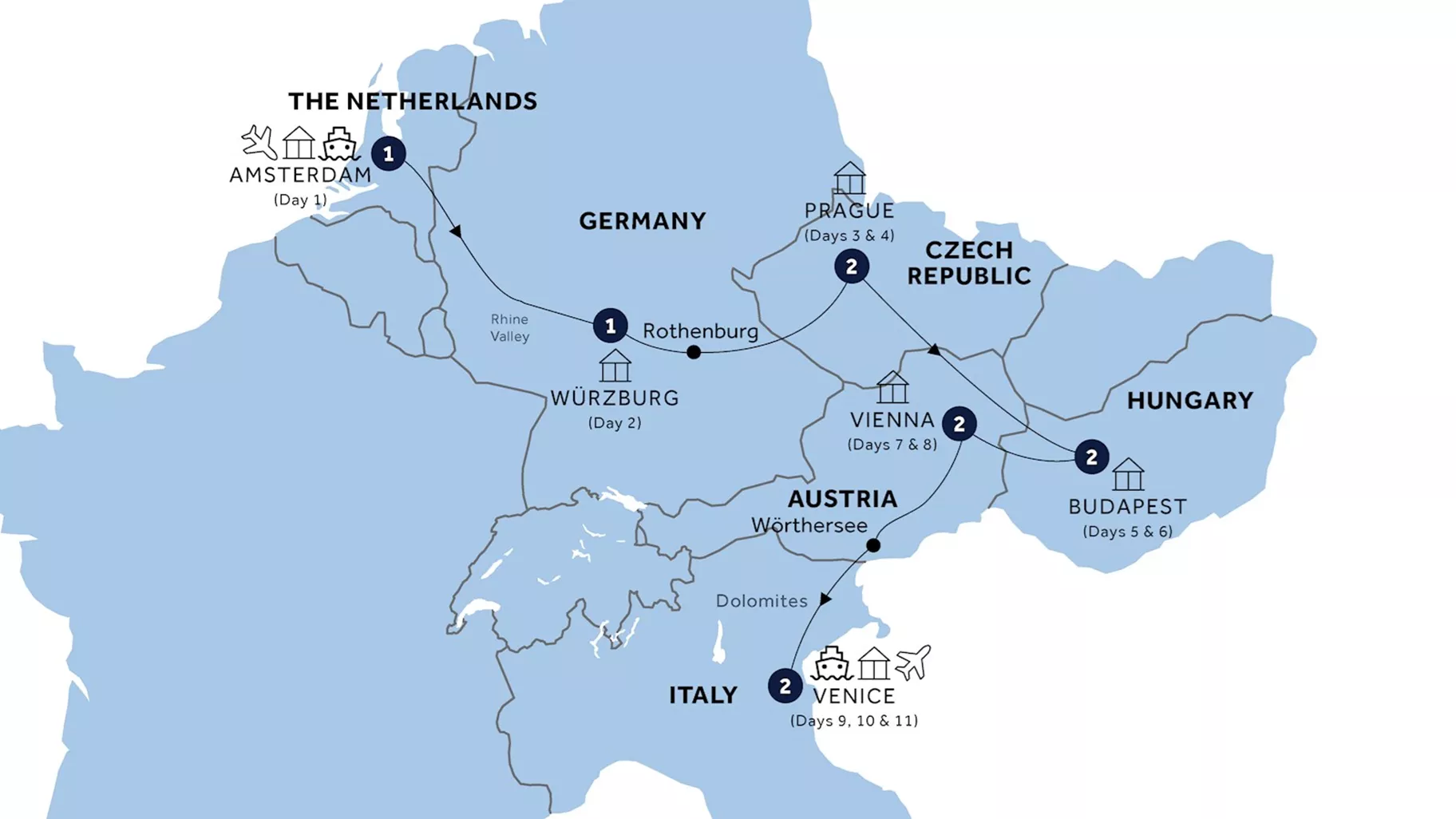 In the morning, there is the option to join a private tour of Maria Theresa’s Schönbrunn Palace and formal gardens. Get your camera ready for a drive around the famous Ring Road. This grand boulevard, built along the lines of the old city walls, showcases many of the capital’s architectural masterpieces, including the Opera House, magnificent Hofburg Imperial Residence and Parliament building. Later, join your Local Expert for a walk through Innere Stadt, the first district and historic core of Vienna. Sit down for traditional coffee and cake and mingle with locals at a cosy cafe.