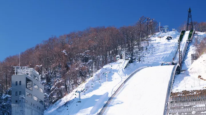 - View Odori Park, Clock Tower and Okurayama Ski Jump Stadium in Sapporo.