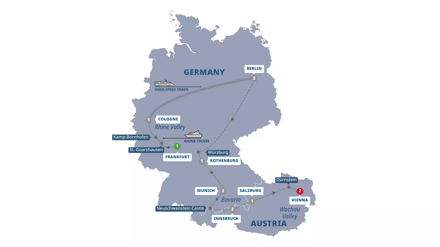 - Discover Frankfurt, Cologne, Rothenburg, Munich and Innsbruck