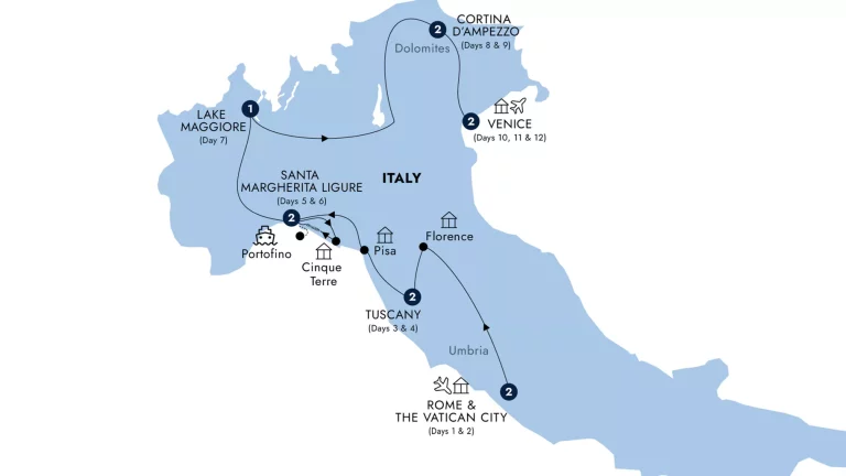 Experience the food and fun of Italy on this 12-day guided tour. In Rome, see the Colosseum where gladiators fought to the death, then visit the Vatican Museums with a Local Expert. Travel from Florence to the heart of Tuscany, stopping in scenic San Gimignano for a taste of gelato with a world-champion gelato maker; later, arrive at your hotel for a sampling of the region’s most robust red wines. Prop up the Leaning Tower of Pisa for a photo and see the UNESCO World Heritage Site Cinque Terre with a Local Expert, who will join you for a sea-to-table feast in the medieval town of Monterosso. Allow yourself to be serenaded as you float along the canals of Venice in a traditional gondola, and watch a renowned craftsman blow Venetian glass into a masterful work of art.