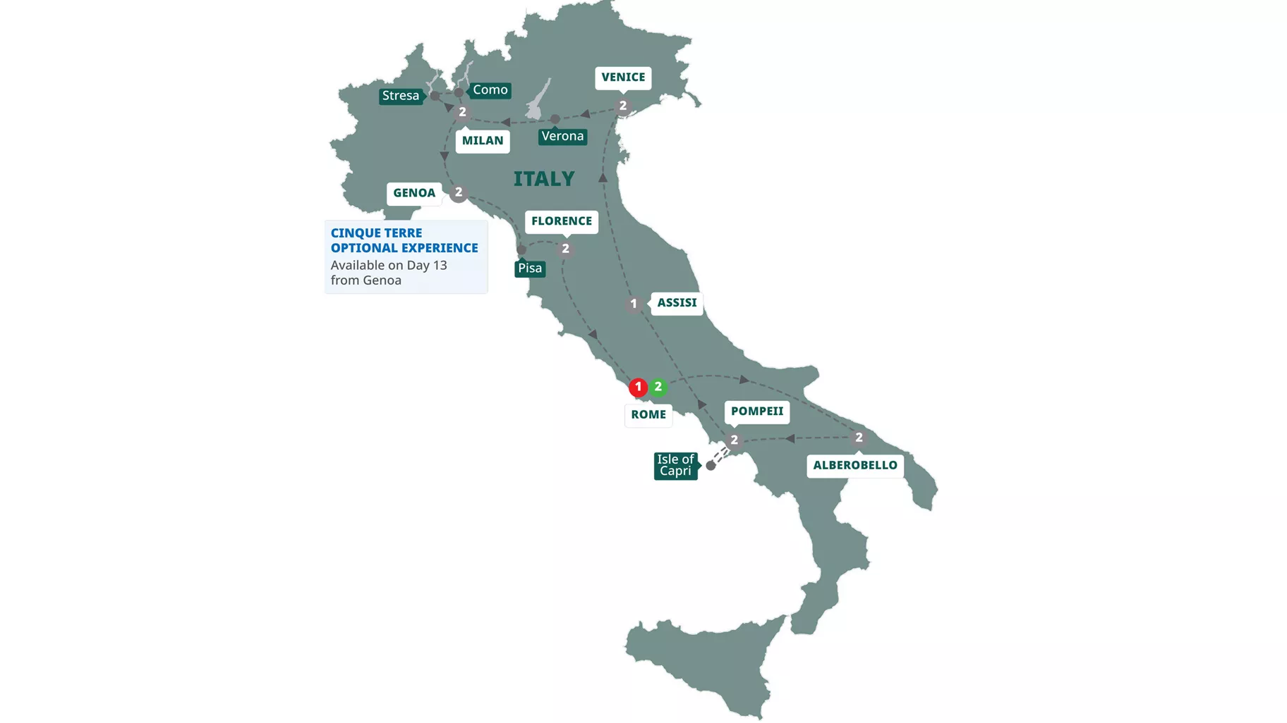 • Explore Rome, Alberobello, Capri, Pompeii, Assisi and Florence