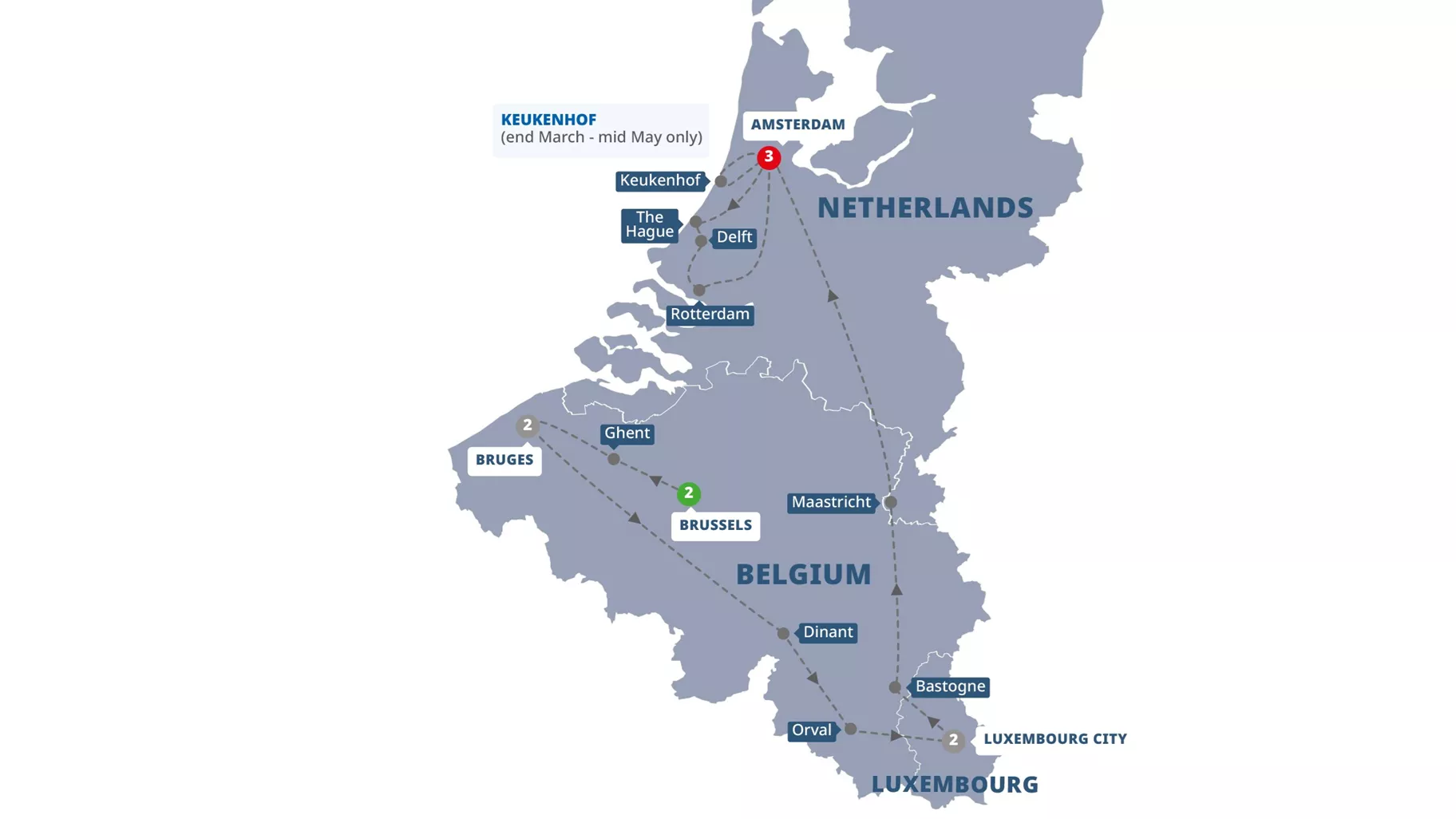 Luxembourg City - Bastogne - Maastricht - Amsterdam