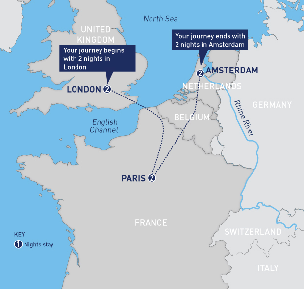 • Discover the world-class museums, fascinating history and cultural charms of Amsterdam