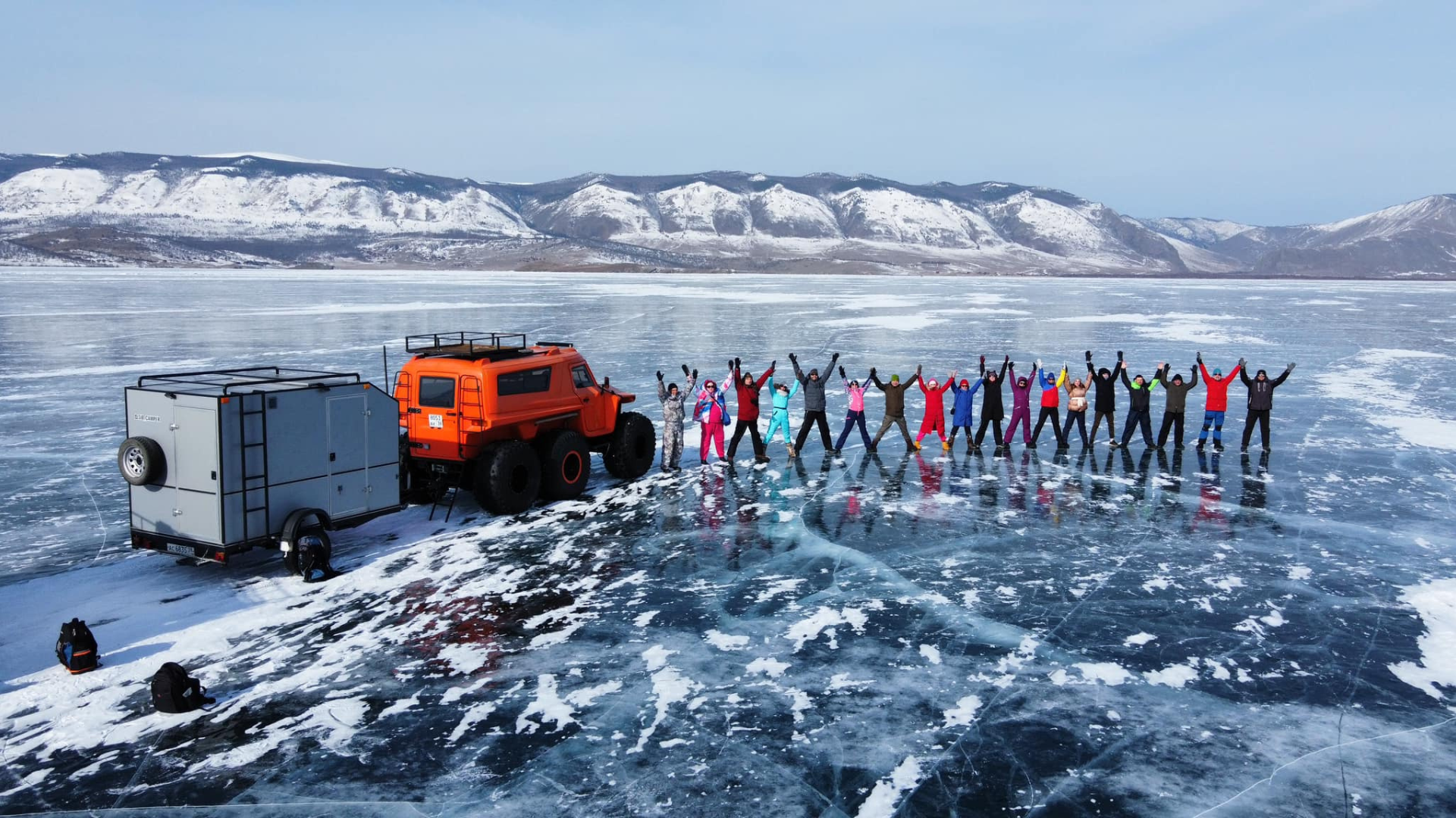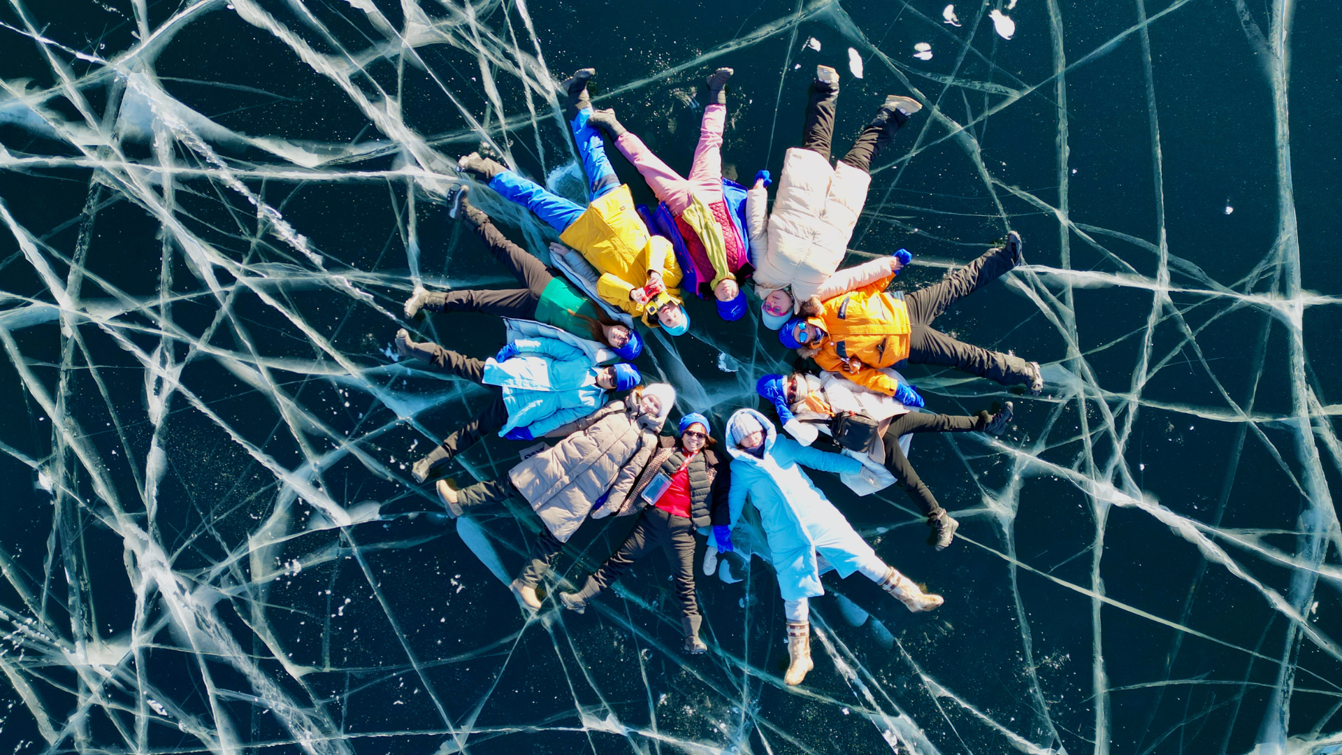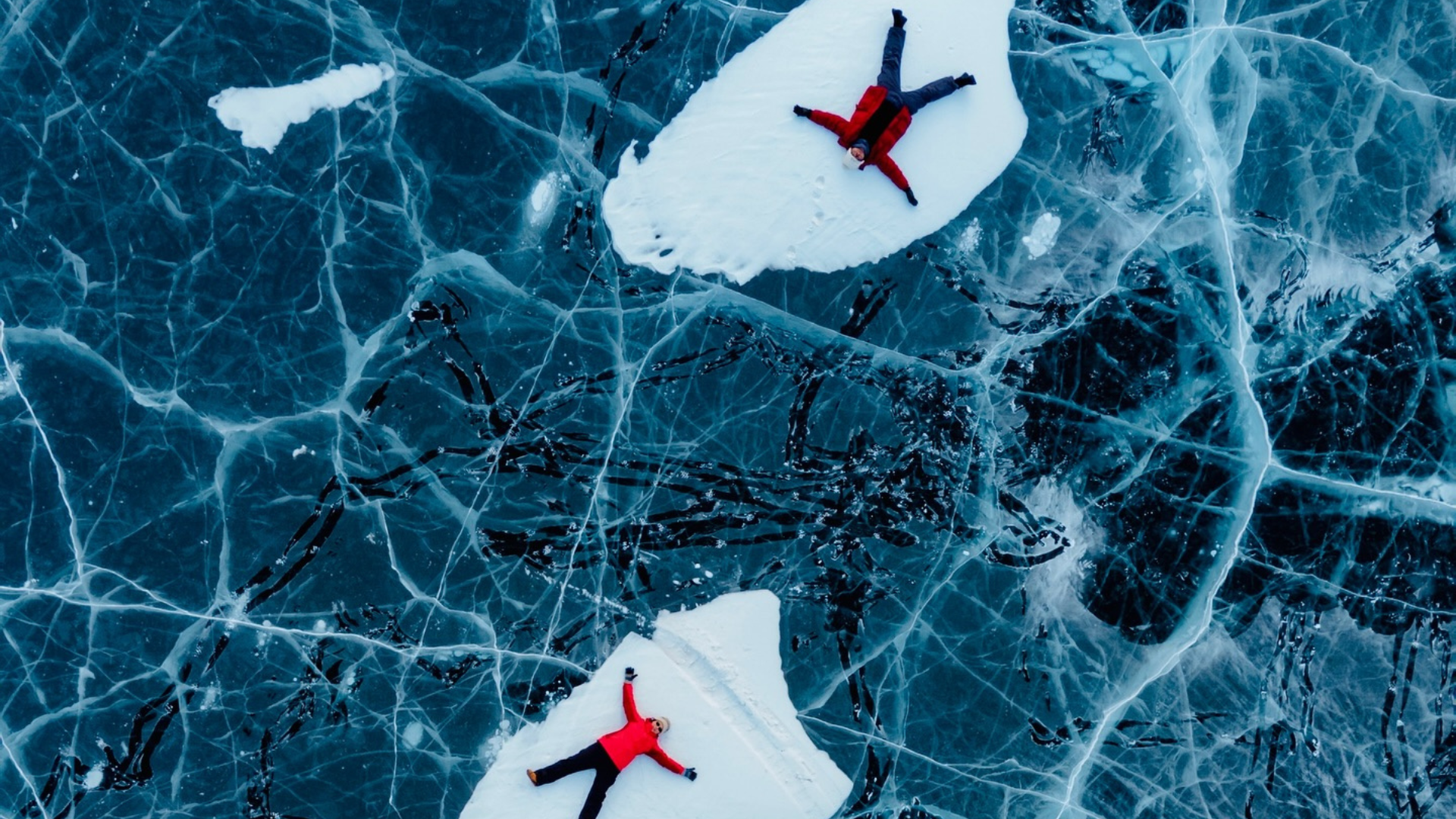 A drone capturing stunning photos of you on the frozen surface of Lake Baikal.