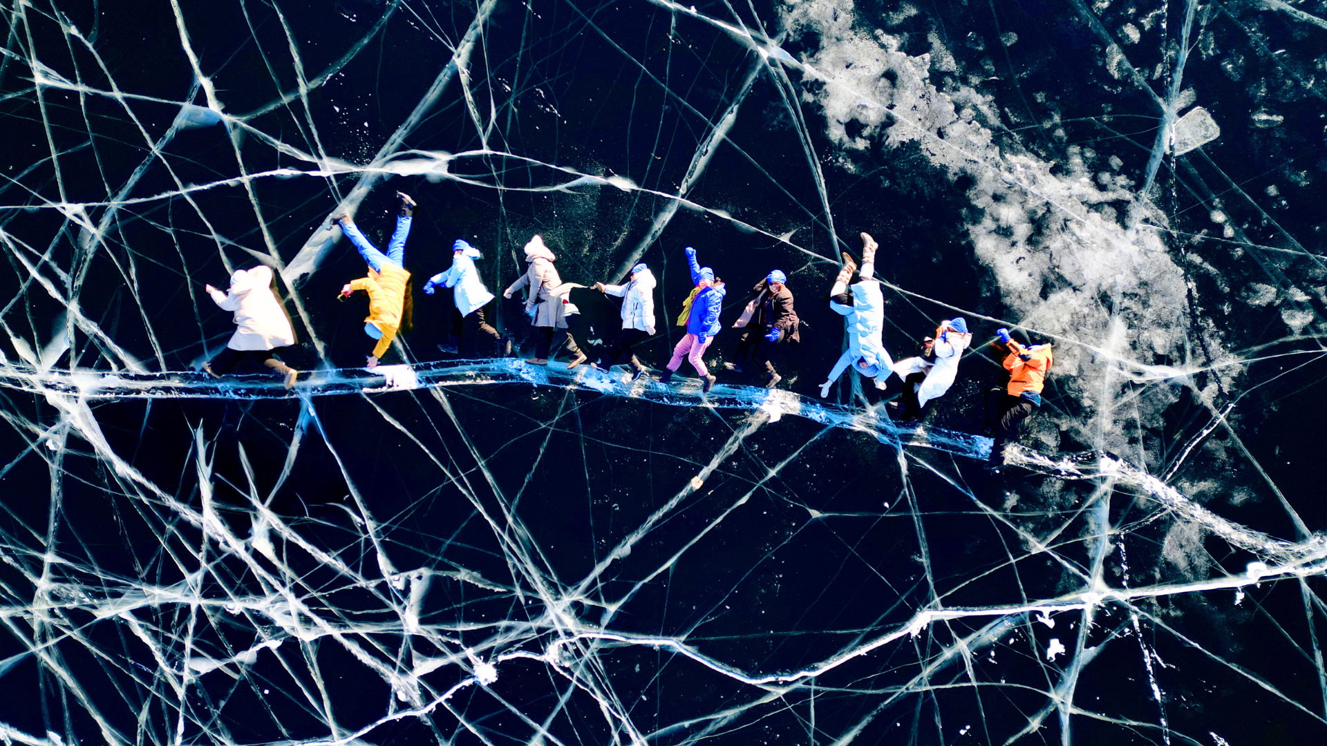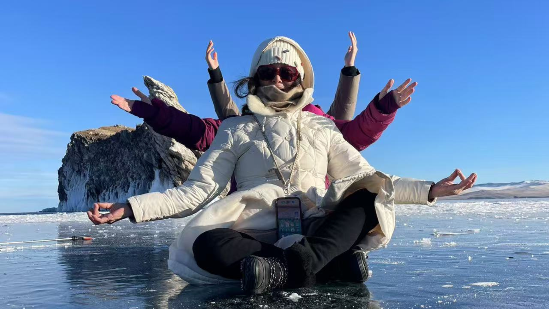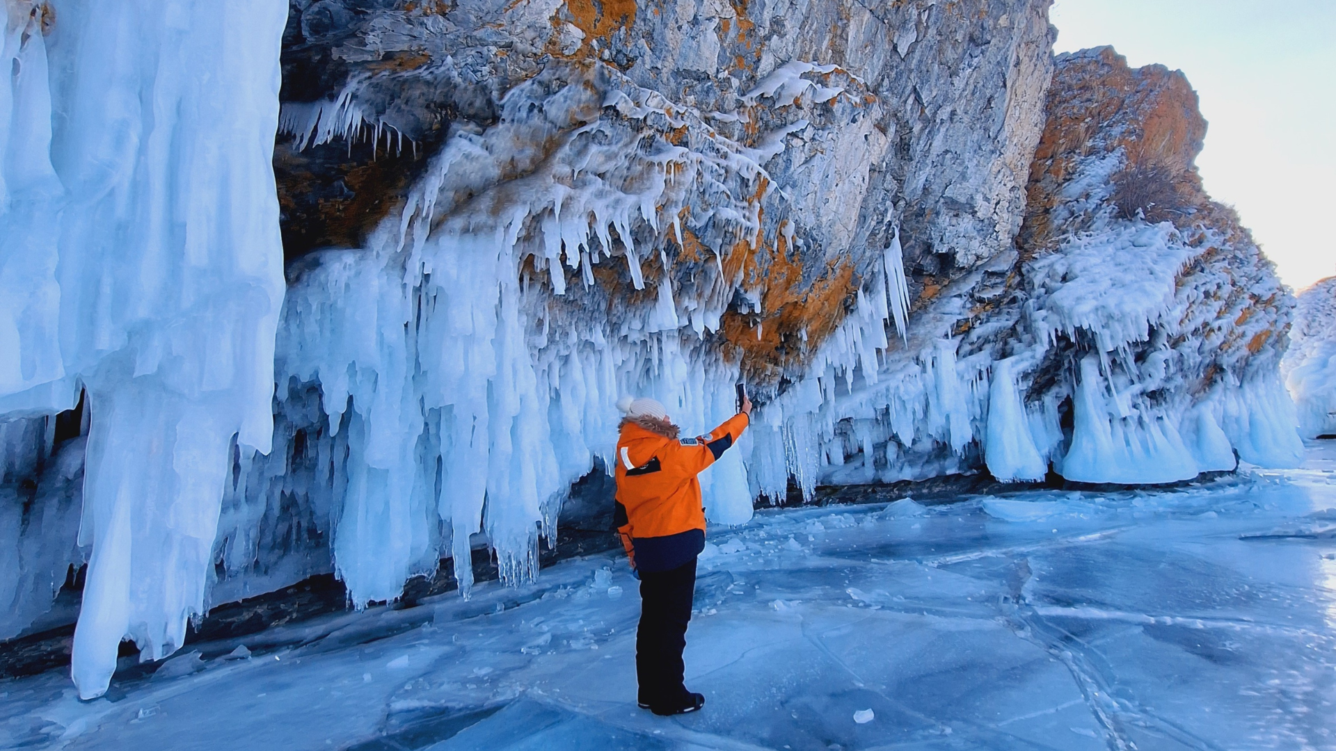 A drone capturing stunning photos of you on the frozen surface of Lake Baikal.