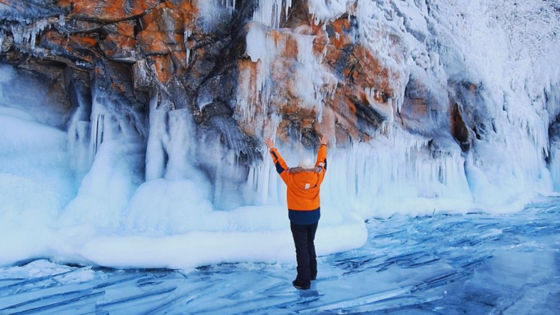 A drone capturing stunning photos of you on the frozen surface of Lake Baikal.