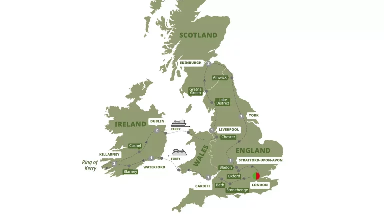 - Visit Stonehenge, the Roman Baths in Bath, the Waterford Crystal Showroom, Blarney Castle to kiss the stone, the Rock of Cashel in Cashel, Gretna Green, Edinburgh Castle and Shakespeare’s Birthplace in Stratford-upon-Avon